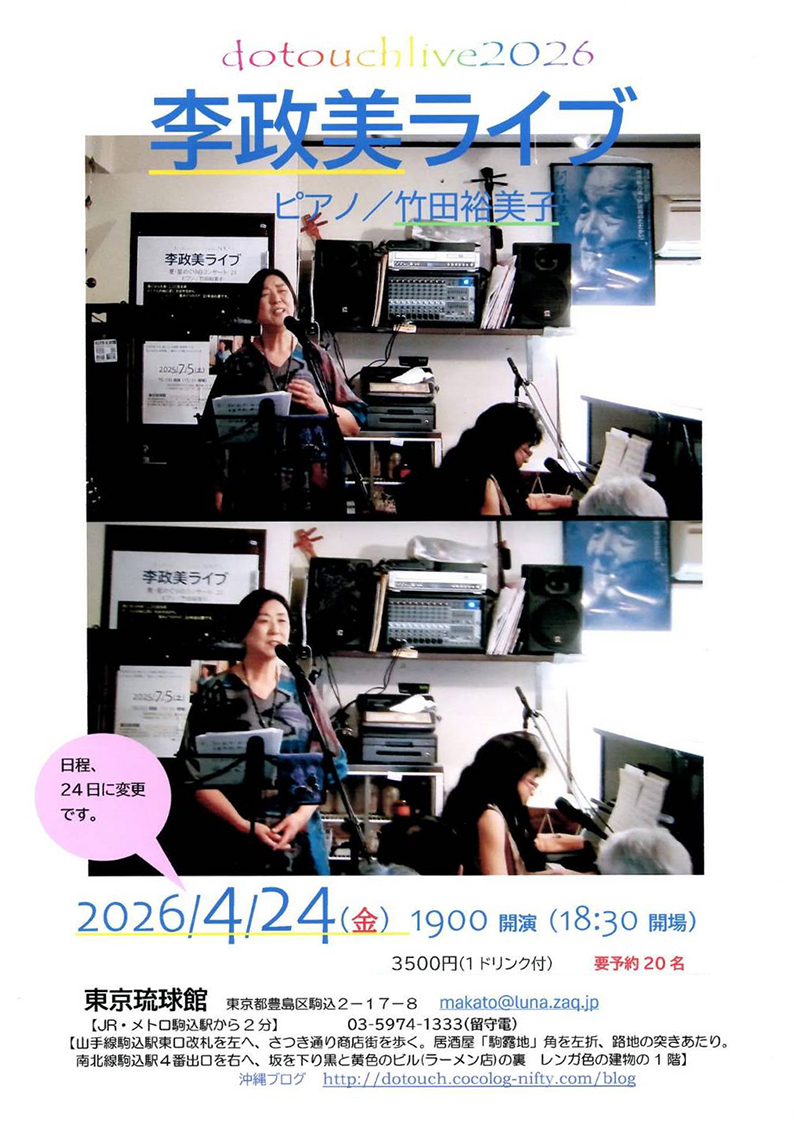 | 予約・問合せ | 東京琉球館 TEL:03-5974-1333(留守電対応) e-mail |