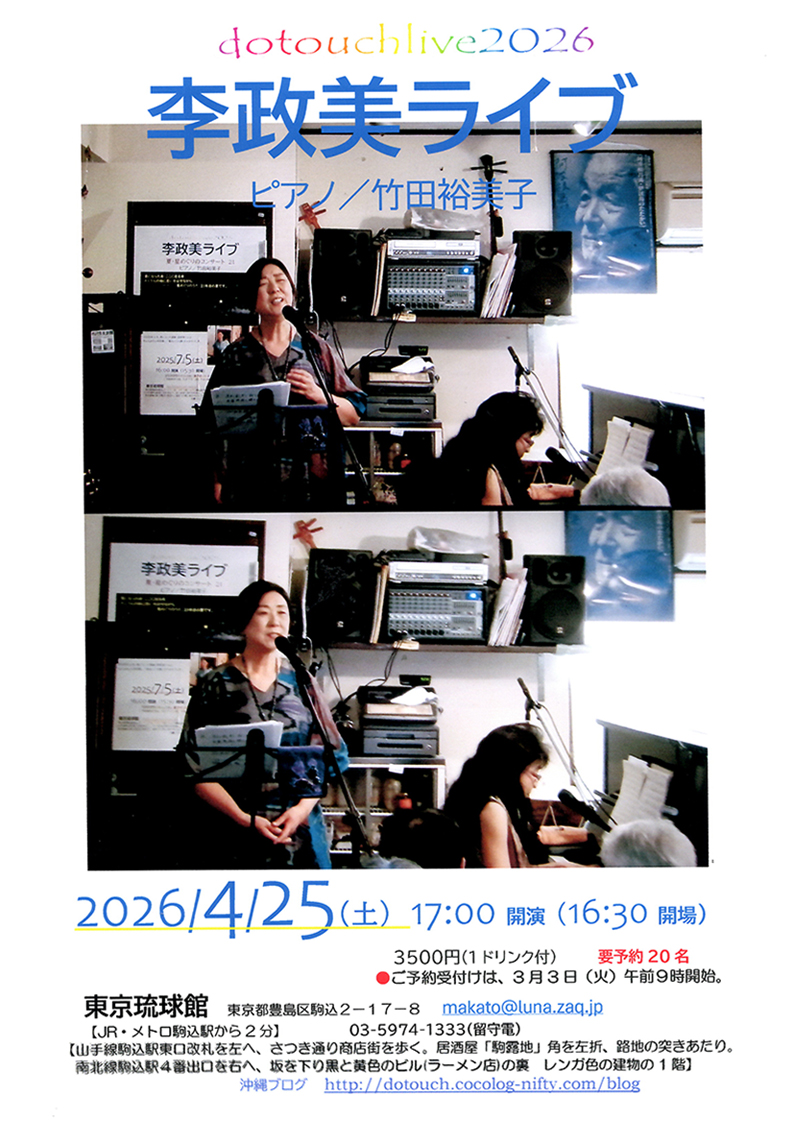 | 予約・問合せ | 東京琉球館 TEL:03-5974-1333(留守電対応) e-mail |